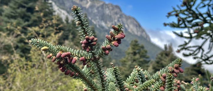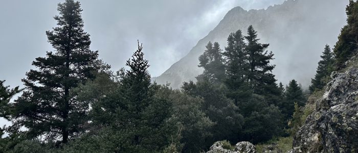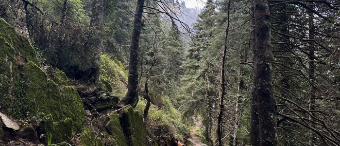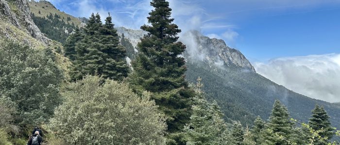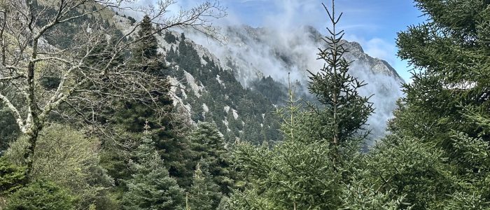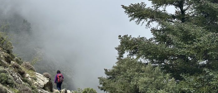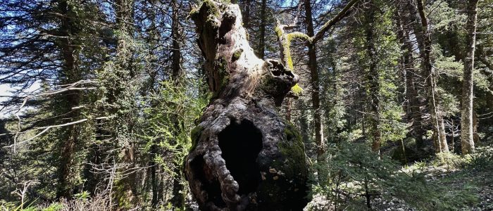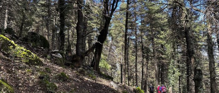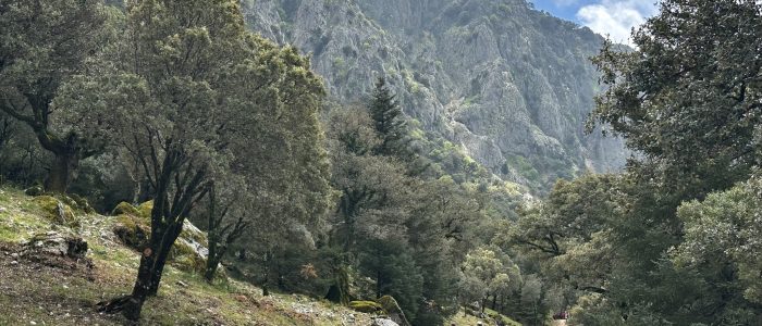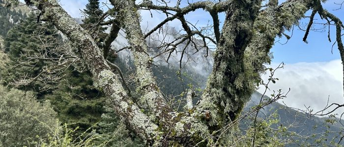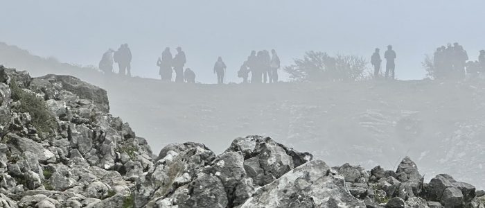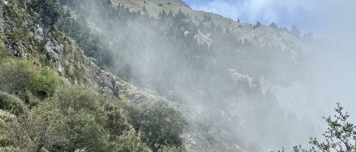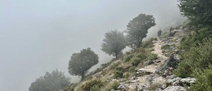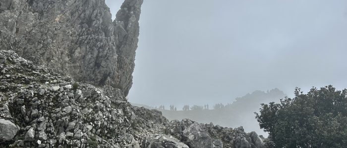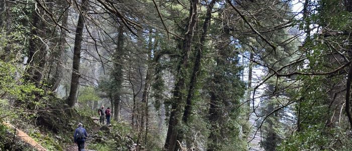 Con las caídas del pinsapar, con esas impresionantes canchales que parecen no tener fin… Nos metemos y nos metemos en el bosque… Como siempre, me siento pequeño y grande a la vez entre estos árboles centenarios, especiales y bellos… El duende se mezcla entre nubes y se apodera de este lugar…!!! Los quejidos acompañantes del camino, las plantas, las luces entre sombras de estos colosos vegetales… y el frescor, el gris, el verde y el marrón se ordenan en un gran baile!!! Disfrutamos en este Camino de las Nieves!!! Y, en un no sé qué… ya estamos en el Puerto del Pinar, donde hacemos el reagrupamiento y nuestro picnic.