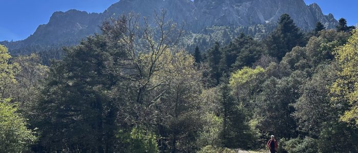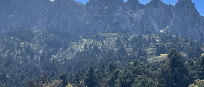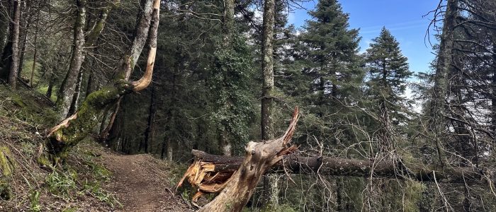 Enfilamos la senda hacia el bosque y el San Cristóbal juega con nosotros al ahora me ves… ahora no me ves… El sendero, entre rocas y barranquillas, nos lleva hasta el corazón de este vergel único!!! Hay momentos mágicos donde la ladera norte de la Sierra del Pinar nos muestra su esplendor, dando visibilidad a su magnífico pico San Cristóbal y al imponente pico Torreón.