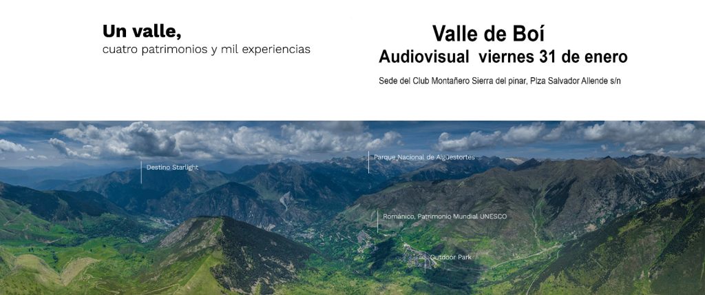 Desde la riqueza natural que te ofrece el Parque Nacional de Aigüestortes i Estany de Sant Maurici, a la espiritualidad que te transmiten los caminos románicos que unen las iglesias de cada uno de sus pueblos, el valle ofrece más de 80 km de caminos señalizados de todas dificultades. Desde el valle se podrá iniciar las travesías de montaña de Carros de Foc, Vía Calda y Les Tres Valls. Mediante este audiovisual recorreremos sus pueblos, mostraremos la riqueza del románico catalán, la belleza de sus montañas y nos adentraremos en el Parque de Aigüestortes, para mostrar el esplendor de su naturaleza y sus característicos meandros de alta montaña. Aigüestortes, es un verdadero paraíso para los amantes de la naturaleza: lagos, torrentes, cascadas, turberas, canchales, agrestes picos y frondosos bosques de pino negro, abeto, pino silvestre, abedul y haya, que constituyen el hogar de multitud de interesantes plantas y fascinantes animales de origen alpino o boreal.